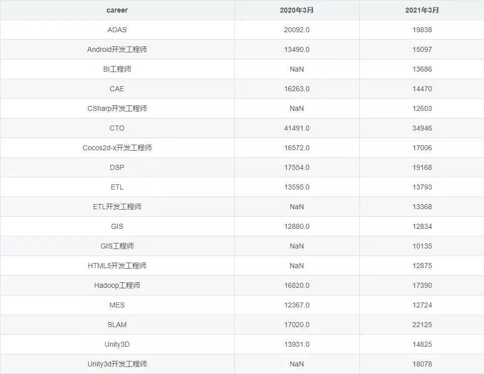 人数最多软件工程师职位,工资从13409元,涨到了14260元。你是否涨了呢?如果没有,就要努力了,工资暂时低问题不大,但是涨薪的幅度咱不能落后!