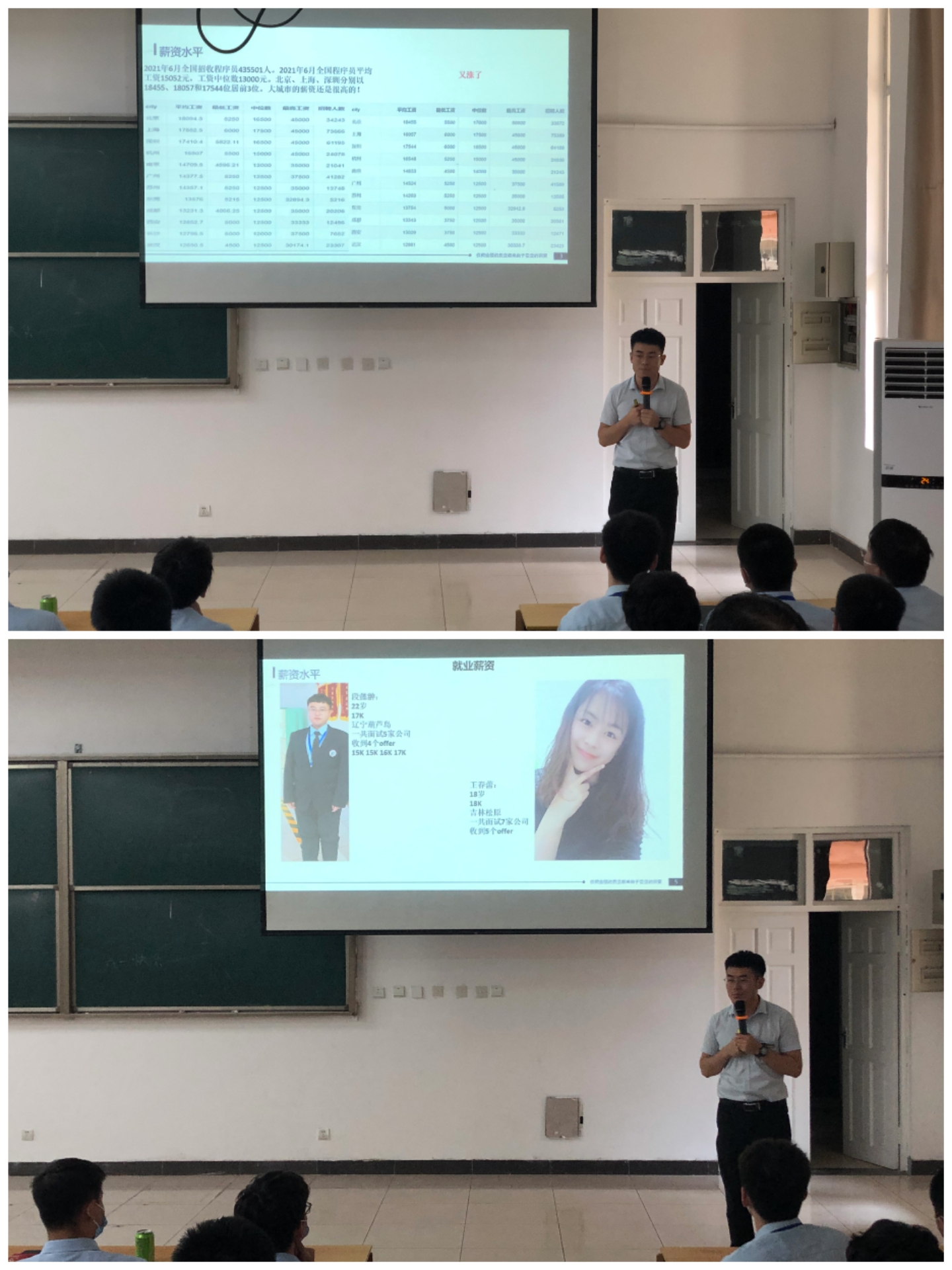 张永杰主任介绍最新就业利好,薪资待遇情况,还增设置了抽奖环节,发放礼物,同学们热情高涨,期待中奖的同时也更加期待自己数月后的高薪就业