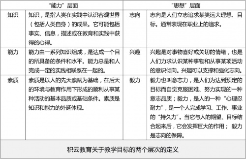 职业教育领域的佼佼者“积云教育”,秉持着“人人皆可成才”的教育理念,以促进就业为导向,致力于为国家培养出一流的、高素质人才。积云教育认为,带领学生掌握知识和技能,应该主要侧重在科目教学目标和教师教学手法两个层面。积云教育每一个科目教学目标的设定,都包含了两个层面的内容,一个层面是“能力”层面,包含三个部分:知识、能力、素质。另一个是“思想”层面,包含志向、兴趣、毅力。这两个层面都是教师教学内容的组成部分,缺一不可,相辅相成。