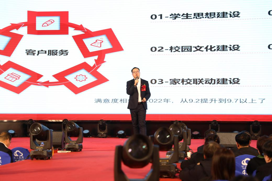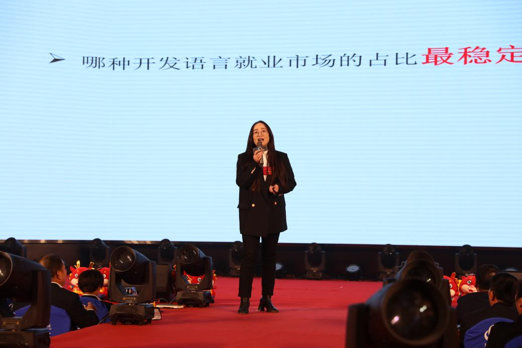 精益求精,精业笃行。积云教育郑州校区王耀龙校长针对郑州校区整体工作进行了专题汇报。2023年,郑州校区在客户服务和教学精进工作中取得了不凡成绩,未来将持续加强校区在“市场服务/口碑营造/思想建设”等方面的深耕。此外,王校也分享了2024年郑州校区的工作部署:首先是学生服务,要强化学生服务和教学服务,层层落实步步到位;其次是教学质量,以实训标准作为教学标准,以市场要求作为学生技术学习要求;第三是教学体验,树立高目标、高要求、高标准,搭建优质的校区团队,同时也将在家校共育/思想引领/学风建设/客户体验/职能保障/安全保障等领域全面发力,建设更好的积云校区。在本次年会中,王校重点提出了2024年郑州校区发展规划:全面打磨“软考鸿蒙班、互联网军校、新媒体影视和Java大数据”专业课程,打造符合时代特色和市场需求的课程产品。