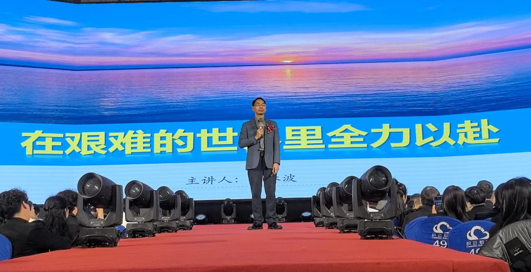 回首2023,凯歌而行不以山海为远;展望2024,乘势而上不以日月为限。会议最后,由积云教育集团创始人兼董事长别林波先生做《在艰难的世界里全力以赴》的主题演讲:
